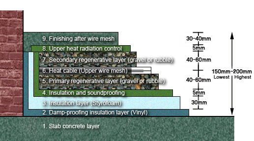 Green Way Regenerative Electric Hot Floor Ondol (MI Hit Cable) can be used through only one time installation as long as the lifetime of a building. A smoke electric wire is most important in deciding the lifetime of this Ondol. It is in one system with no connection except for the lead wire that is connected with the controller. Basically, it has no factor for malfunction.